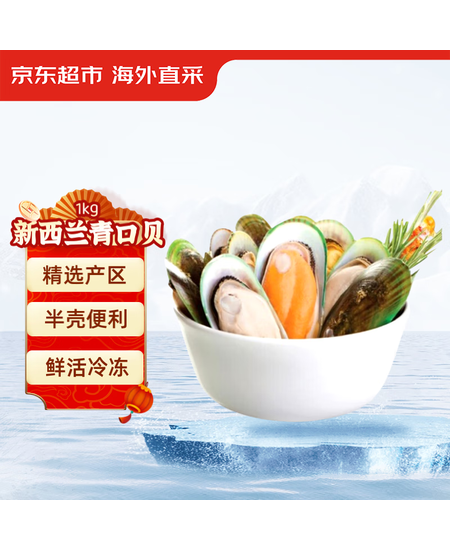 京东超市 海外直采新西兰青口贝(半壳熟冻)2斤 30-44只 新老包装随机发货