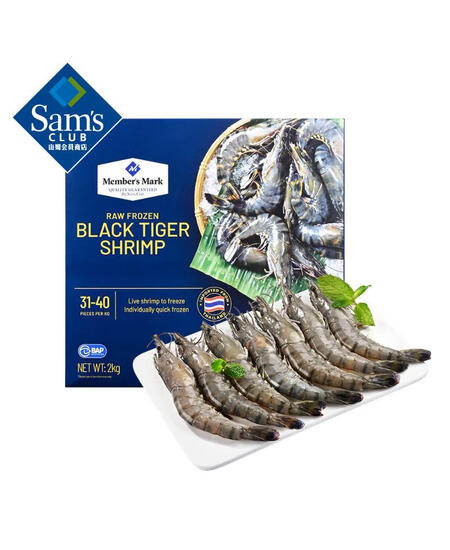 Member's Mark 泰国进口 生冷冻黑虎虾 2kg (约31-40只/每千克) 2kg(净重)