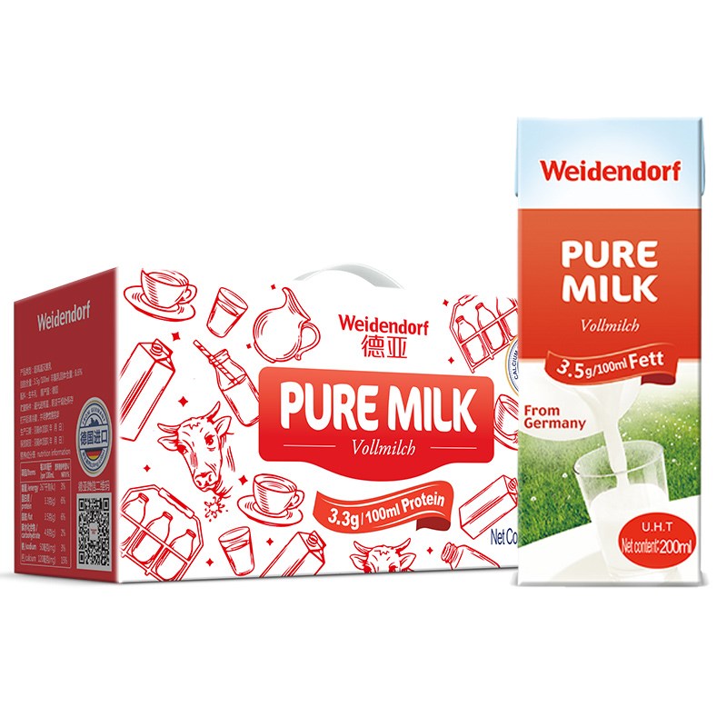 【进口】德国牛奶 营养早餐奶 德亚全脂牛奶纯牛奶200ml*10盒整箱装