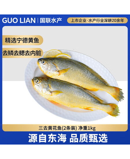 GUO LIAN国联三去黄花鱼2条共净重2斤国产宁德东海大黄鱼聚餐海鲜水产食材