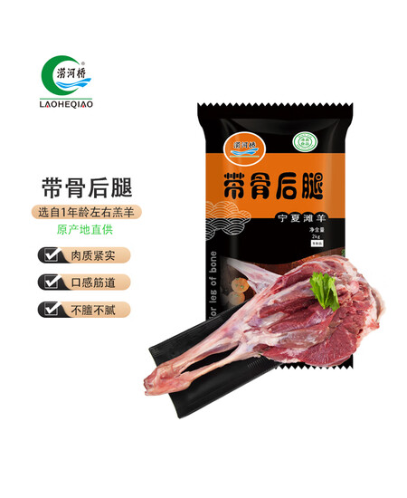 涝河桥 宁夏滩羊 国产带骨羊后腿 4斤/条 生鲜羊肉烧烤食材