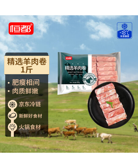 恒都 国产精选羊肉卷 1斤 冷冻 火锅食材 羊肉片 生鲜
