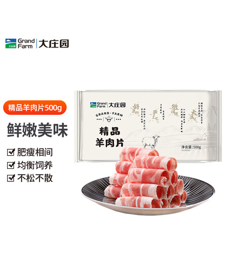 大庄园新西兰羊肉片卷1斤【欧盟认证】涮肉火锅食材 冷冻羊肉羊肉卷