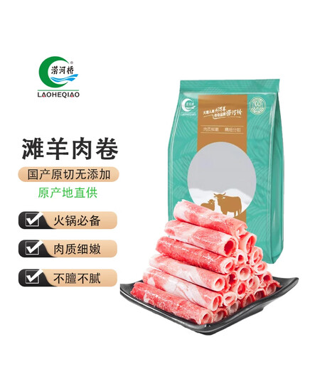 涝河桥 供港宁夏滩羊原切羊肉卷 480g/袋 国产冷冻火锅食材