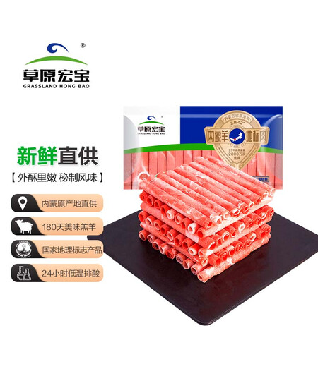 草原宏宝内蒙原切羔羊肉片 净重1斤/袋 羊肉卷 火锅食材 地标认证