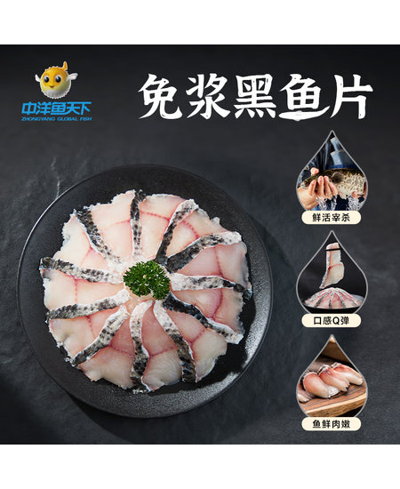 中洋鱼天下 (ZHONGYANG GLOBAL FISH) 冷冻中段免浆黑鱼片250g 生鱼片 酸菜鱼 生鲜 鱼类 年货