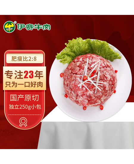 伊赛 国产原切牛肉馅/牛肉饼 2斤(250g*4) 烧烤生鲜 冷冻