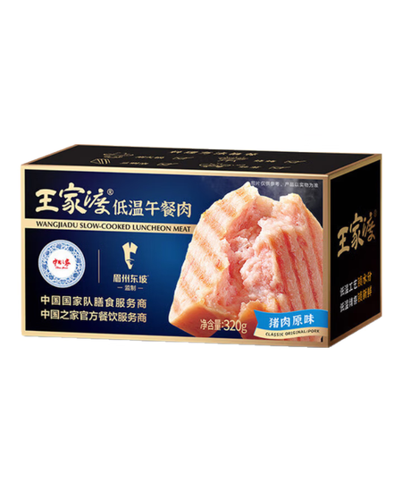 王家渡低温午餐肉黑胡椒味320g即食早餐三明治香肠肉肠烧烤火锅方便速食