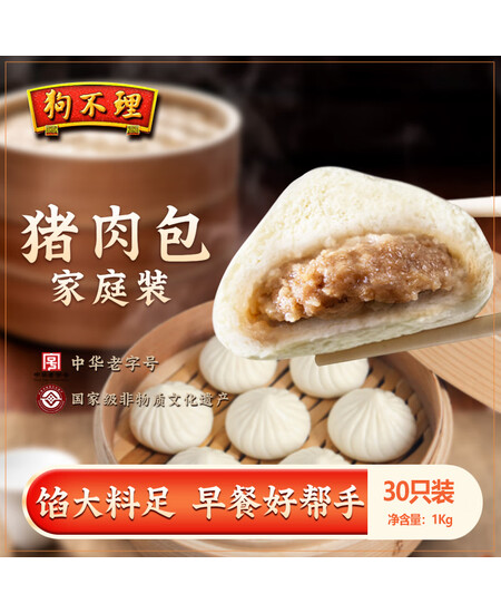 狗不理 机制猪肉包 1kg 30个 包子 速冻食品 方便早餐