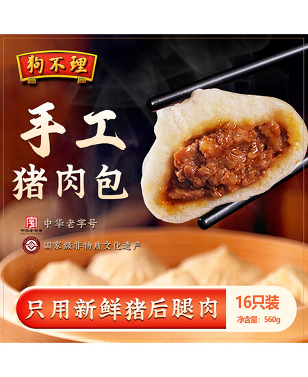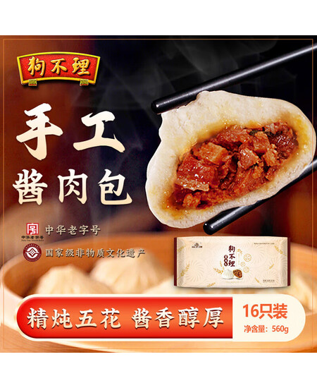狗不理 手工酱肉包 560g 16个 包子面点 速冻早餐 早点 早茶点心 馒头