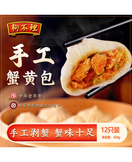 狗不理包子手工猪肉蟹黄包420g 12个主食面点儿童早餐天津特产