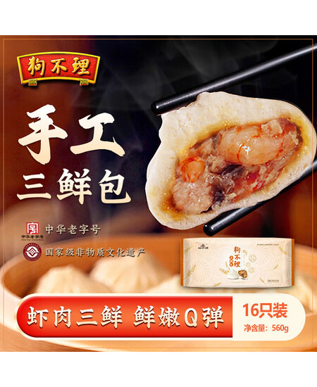 狗不理包子 纯手工虾肉三鲜560g 16个主食面点儿童早餐天津特产