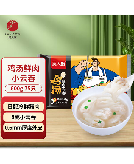 吴大嫂馄鲜生 鸡汤鲜肉小云吞 600g 75只馄饨 肉燕 搭配云吞面 早餐