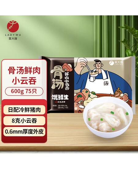 吴大嫂 馄鲜生 骨汤鲜肉小云吞 600g 75只 火锅食材 方便菜 抄手 肉燕