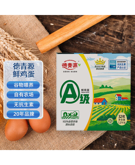 德青源A级鲜鸡蛋32枚2.74斤起无抗生素 谷物喂养 营养早餐中秋送礼礼盒