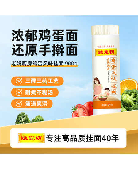 陈克明面条 老妈厨房鸡蛋风味挂面900g 挂面炸酱面拌面拉面营养挂面