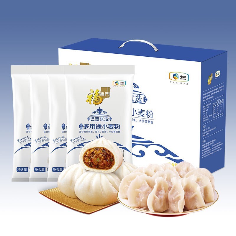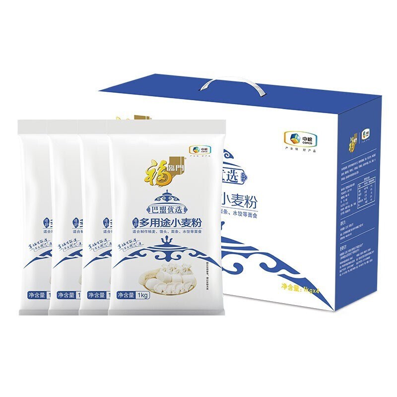 【单品】中粮福临门巴盟优选多用途小麦粉面粉礼盒1kg*4