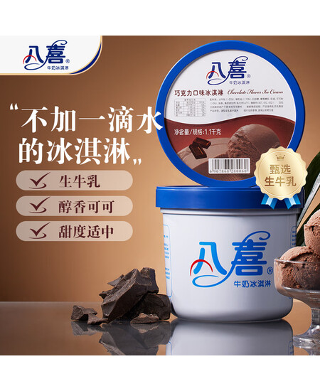 八喜冰淇淋 巧克力口味1100g*1桶 家庭装 生牛乳冰淇淋大桶