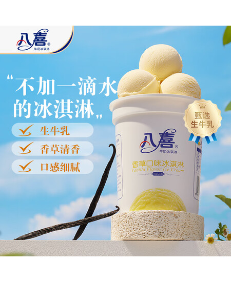 八喜冰淇淋 香草口味550g*1桶 家庭装 生牛乳冰淇淋桶装