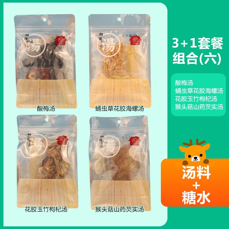 耕懂生活 养生汤料:酸梅汤+蛹虫草花胶海螺汤+花胶玉竹枸杞汤+猴头菇山药芡实汤 滋补 营养 药膳 养生