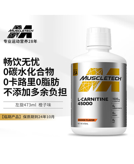 肌肉科技(MUSCLETECH)左旋肉碱45000 健身男女液体液态左旋肉碱小黑瓶473ml【保质期至10月】橙子味