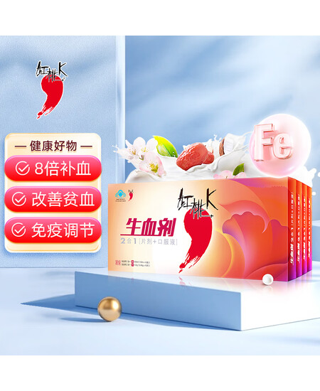 红桃K 生血剂补血口服液(口服液10支+片剂10片) 4盒装 女性成人中老年补铁补血 改善贫血送礼佳品