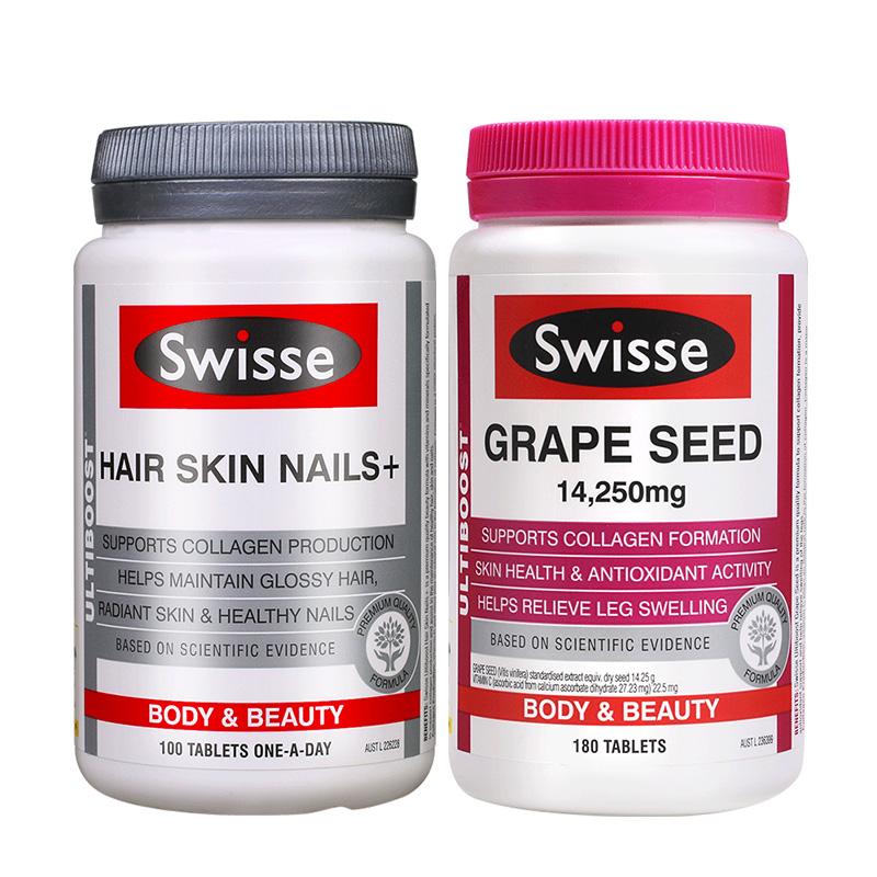澳大利亚swisse护发护肤护甲片100片+葡萄籽片180粒组合