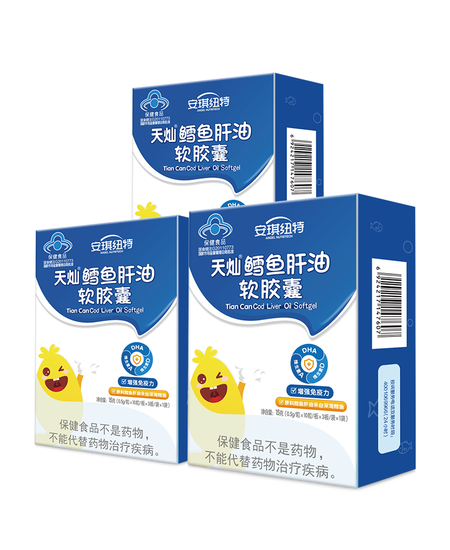 安琪纽特 青少年鳕鱼肝油幼儿儿童含DHA维生素A维生素D 增强免疫 30粒*3盒