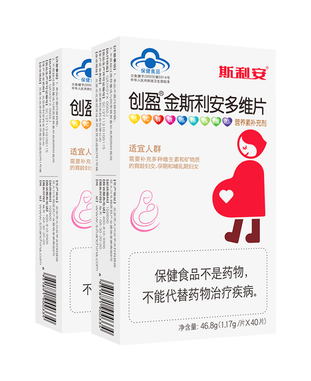 斯利安叶酸多维片 金斯利安复合维生素 备孕孕妇孕期哺乳期适用40片*2盒