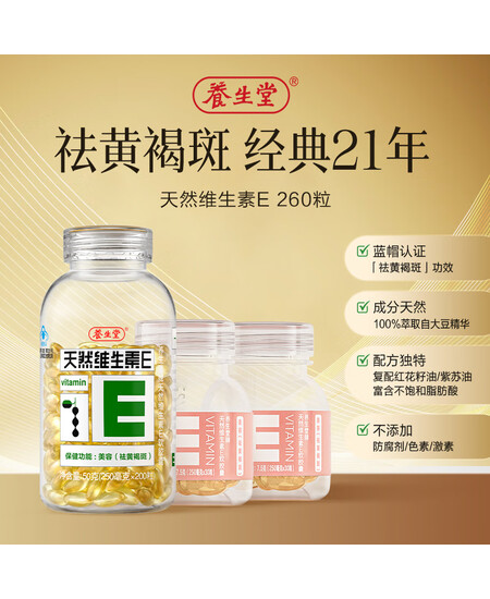 养生堂天然维生素e260粒软胶囊 VE ve美容(祛黄褐斑)科学复配 紫苏油 红花籽油 成人营养保健品
