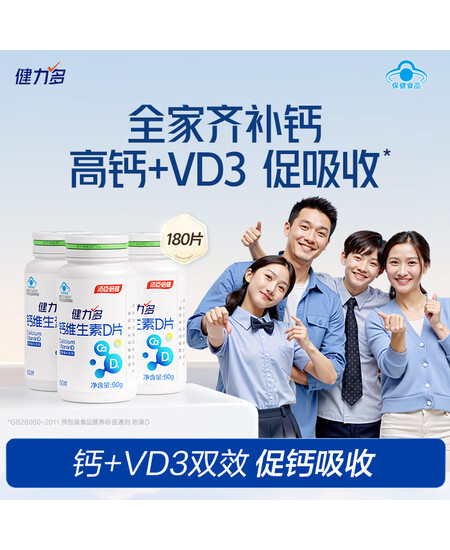 健力多钙加维生素D60片*3瓶共180片中老年钙片成人补钙 维生素D3钙片