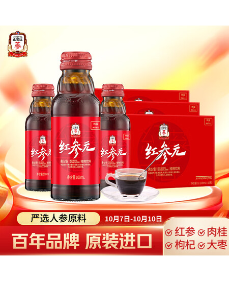 正官庄人参红参液红参元饮100ml*30瓶 原装进口 健康滋补礼品礼盒礼物