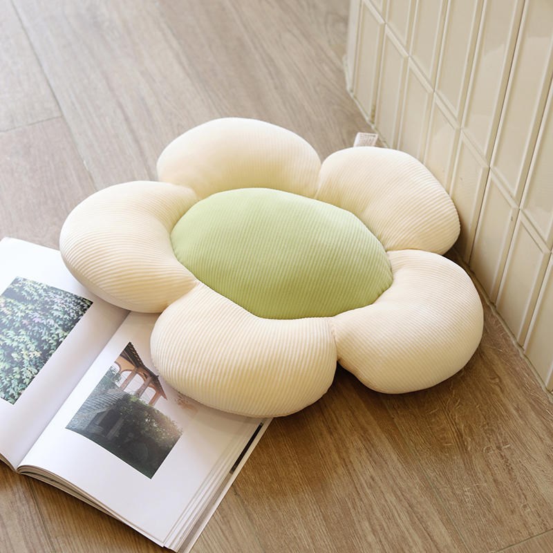 雅乐巢Gagaku nest新款条纹弹力超柔花朵坐垫 /50*50/绿心米白色