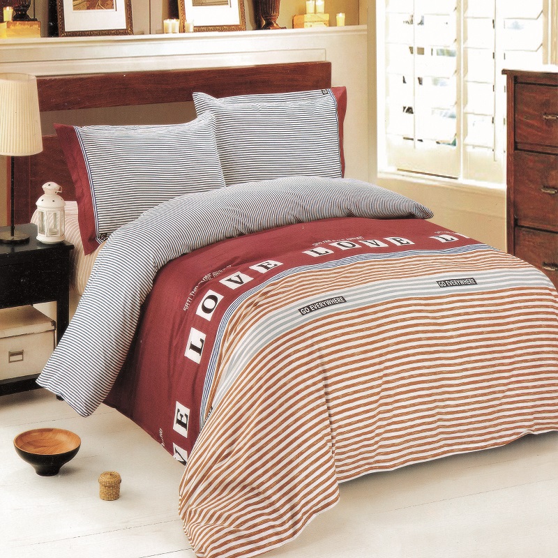 德泽家纺 磨毛印花三件套 简约床上用品双人床单枕套 DZ-J1909 快乐出发