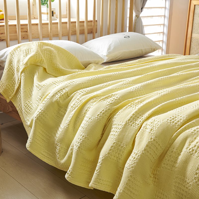 雅乐巢Gagaku nest新款全棉针织纱布盖毯A类透气毯 黄/100*150