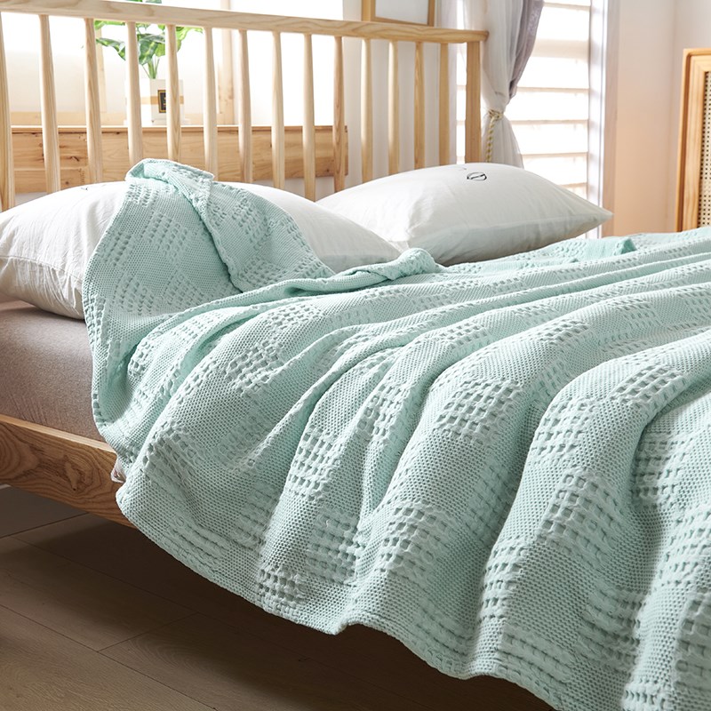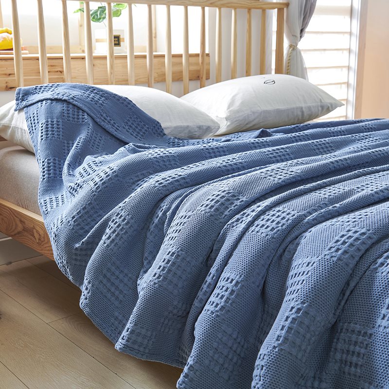 雅乐巢Gagaku nest新款全棉针织纱布盖毯A类透气毯 /湖蓝100*150
