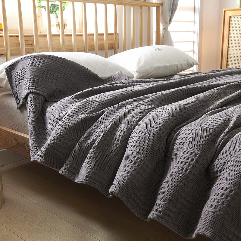 雅乐巢Gagaku nest新款全棉针织纱布盖毯A类透气毯深灰 /100*150