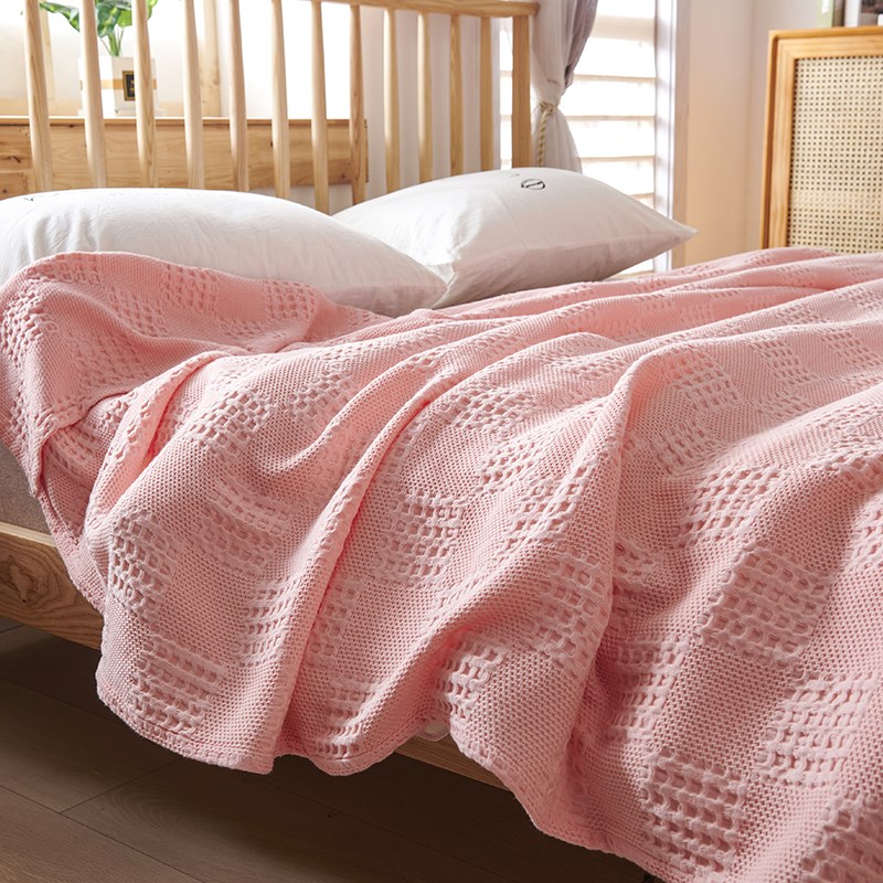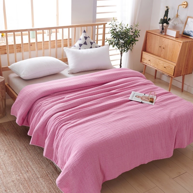 雅乐巢Gagaku nest新款全棉针织纱布盖毯A类透气毯/粉色/100*150