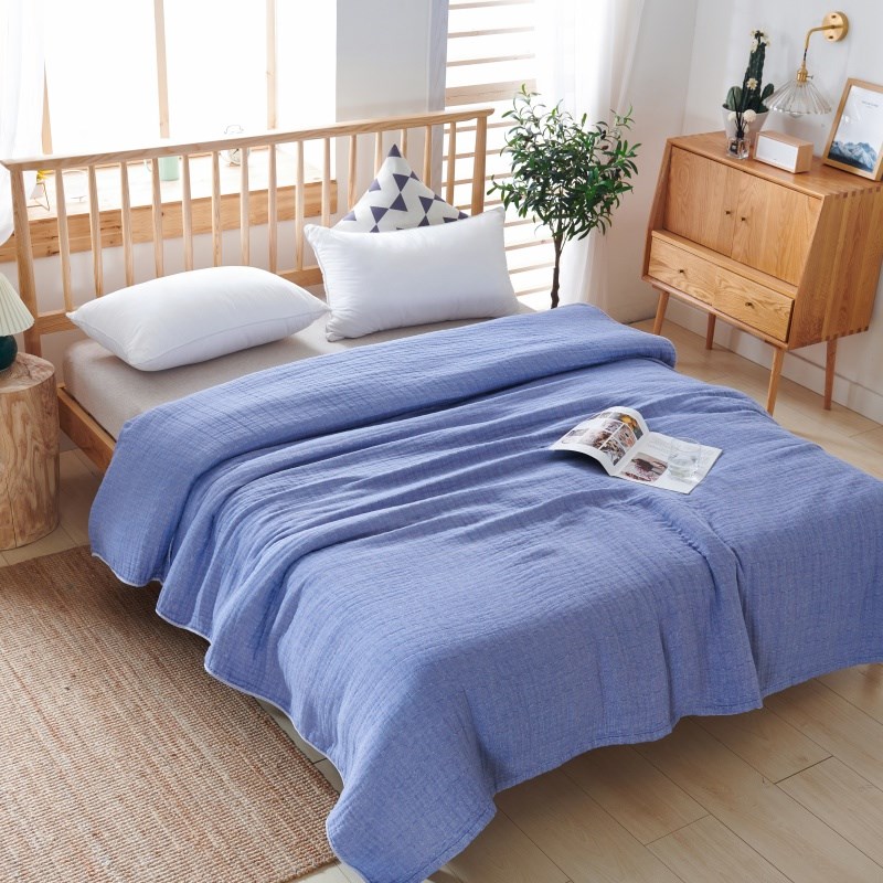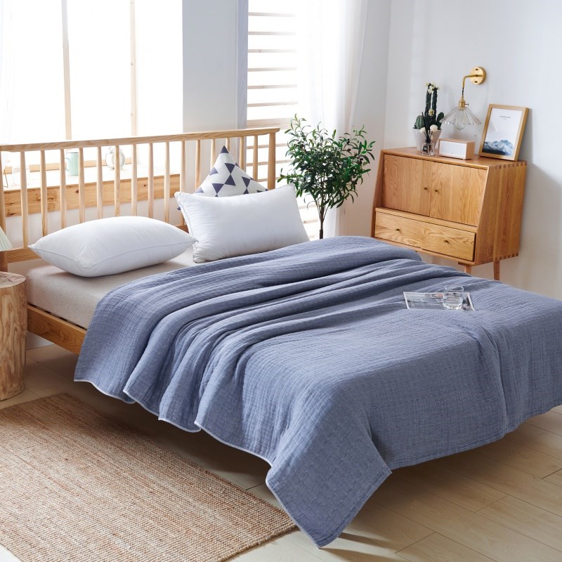 雅乐巢Gagaku nest新款木格素色全棉四层纱布毛巾被 /牛仔蓝100*150