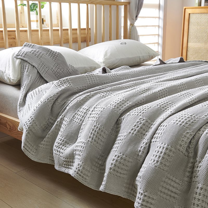 雅乐巢Gagaku nest新款全棉针织纱布盖毯A类透气毯 浅灰/100*150