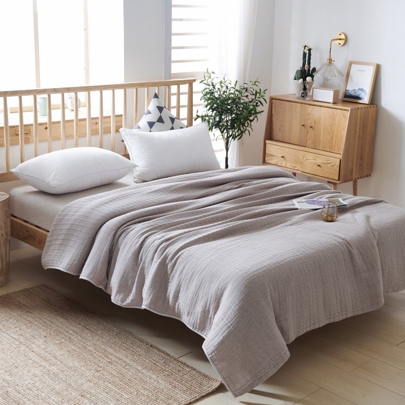 雅乐巢Gagaku nest新款木格素色全棉四层纱布毛巾被 浅灰/100*150