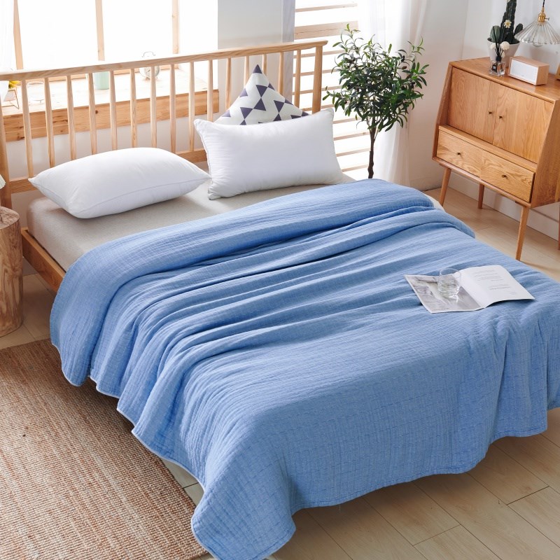 雅乐巢Gagaku nest新款全棉针织纱布盖毯A类透气毯 浅蓝/100*150