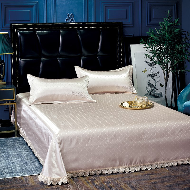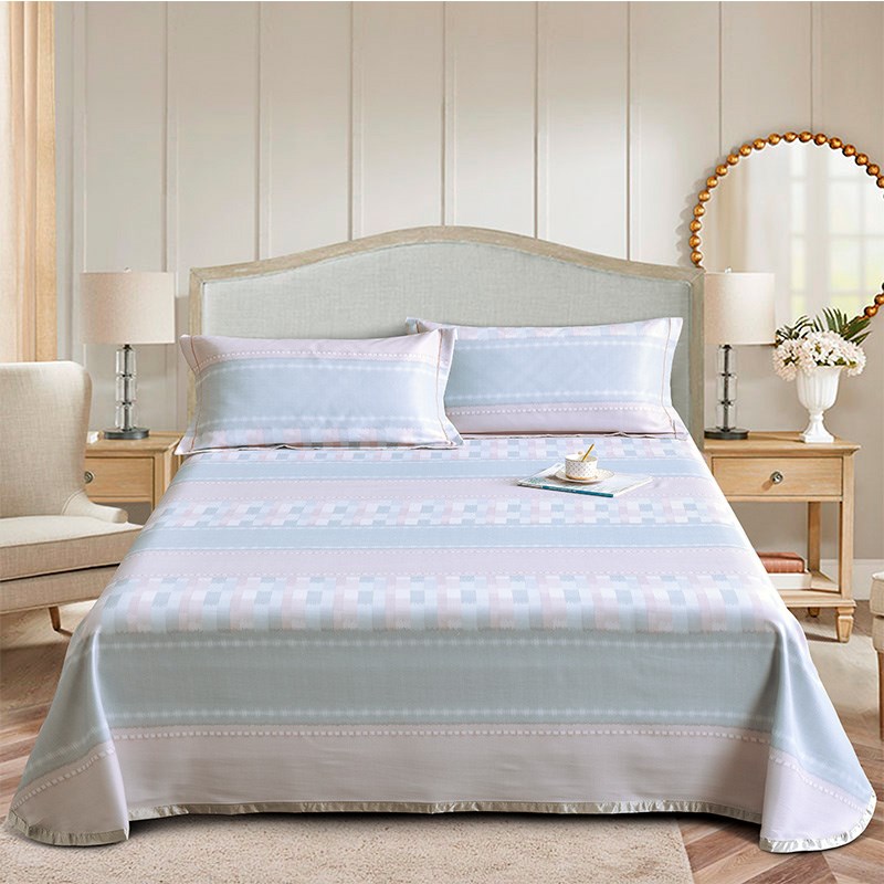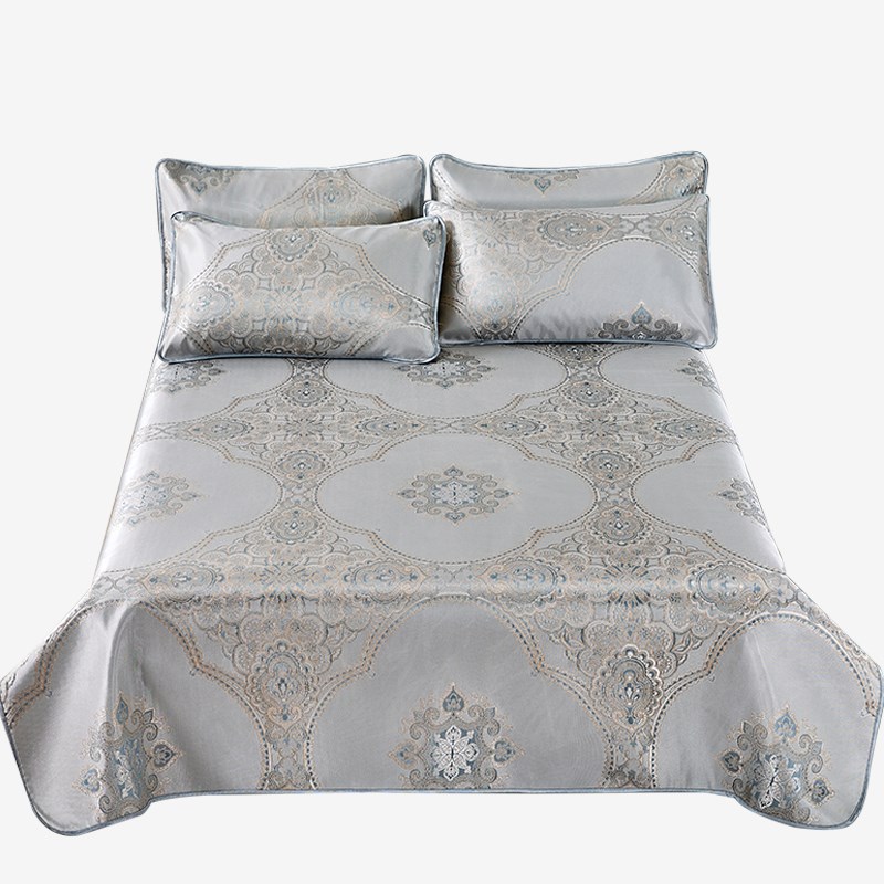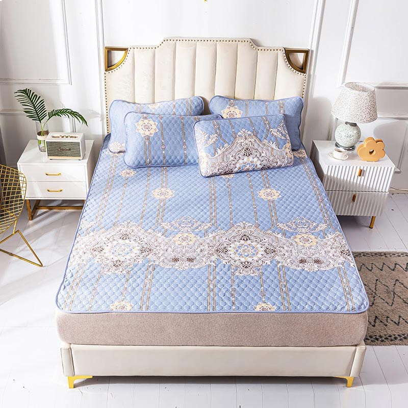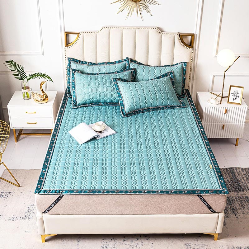 德泽家纺 水洗提花冰丝席 床单式冰丝席三件套双人凉席 DZ-X829 蓝色230*250CM