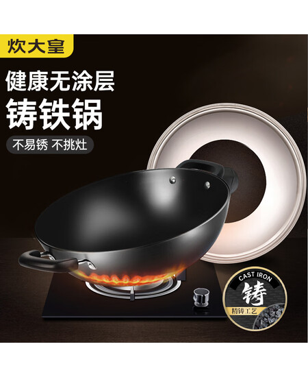 炊大皇 炒锅36cm铸铁锅无涂层铁锅生铁锅具电磁炉燃气煤气灶明火通用