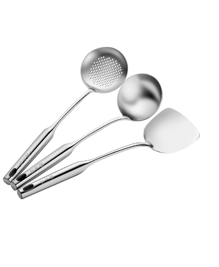 炊大皇 铲勺套装 304不锈钢锅铲+汤勺+漏勺三件套 铁锅不锈钢锅炒菜铲子