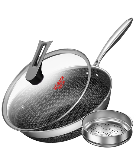 康巴赫炒锅316L不锈钢炒菜锅双面蜂巢不粘锅32cm旗舰款配蒸屉电磁炉通用