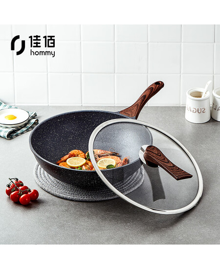 佳佰 麦饭石煎炒锅 无油烟锅具 平底不粘锅炒菜锅 电磁炉燃气灶煤气灶明火通用32cm 配木铲