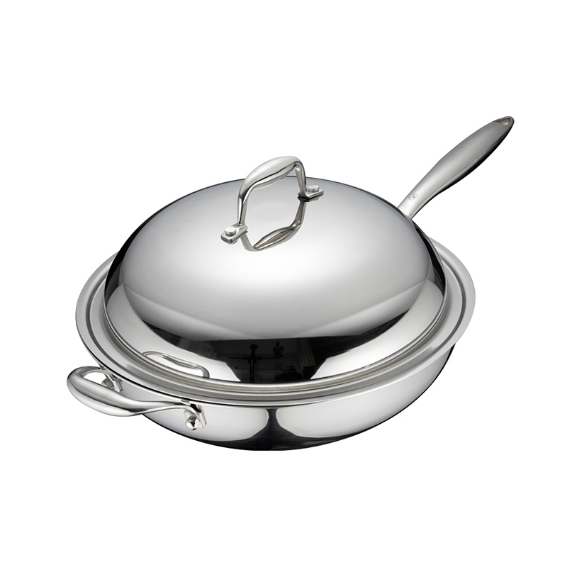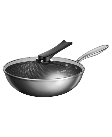 炊大皇 炒锅 304不锈钢炒菜锅煎锅 平底不粘炒锅32cm 可立可视盖不挑灶