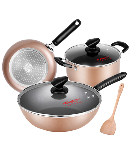 炊大皇 锅具套装 炒煎汤锅不粘锅三件套 送礼套装磁炉通用 雅致WG46628