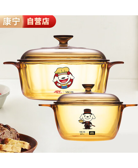 康宁1.5L+2.25L晶彩透明汤锅炖锅煮锅 锅具套装二件套VS-1522/JD